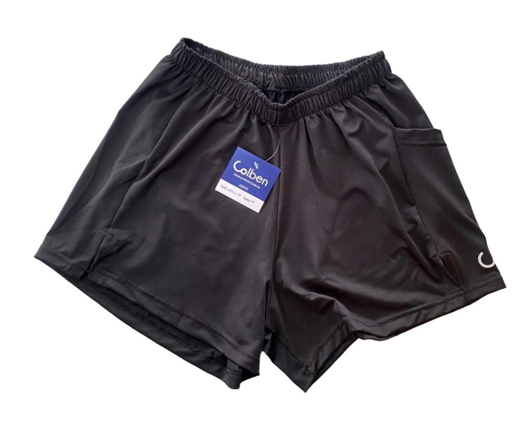 Short deportivo en lycra liviana. Elasticidad justa, máxima durabilidad y comodidad. Con bolsillo lateral, ideal para entrenamiento o uniforme deportivo. Disponible en color NEGRO, con opción de personalizar el color a partir de 50 unidades.