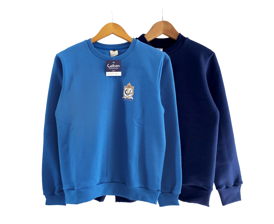 Buzo cuello redondo en algodón con frisa interna. Prenda práctica para actividades laborales e institucionales que aporta abrigo y gran comodidad. Admite combinación de cuello y puños en contratono. Disponible también en algodón sin frisa (rústico).