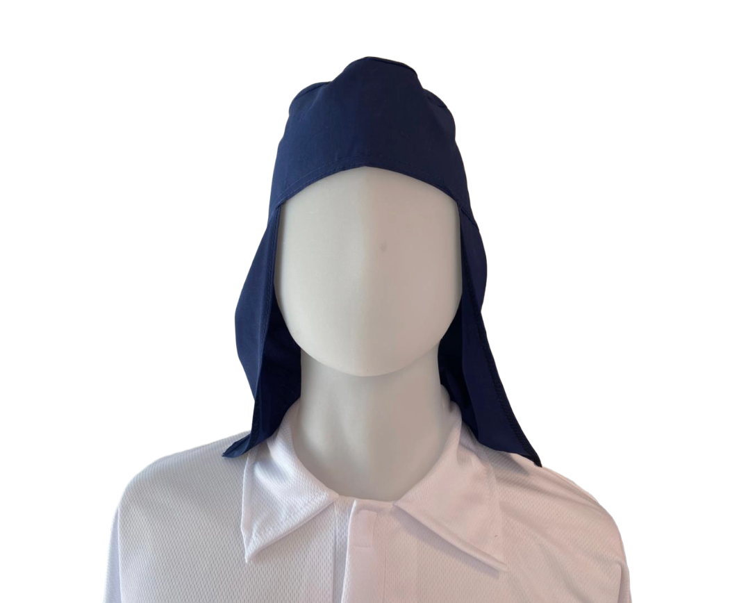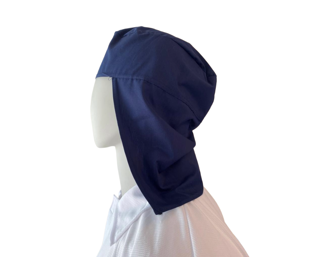 Cofia de protección en poplin, diseñada para entornos donde la higiene es prioridad. Su diseño amplio cubre cabeza, orejas y cuello, ofreciendo comodidad y resguardo durante toda la jornada.
