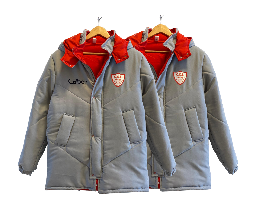 Disponible en gris, negro, blanco, verde oscuro, azul oscuro y rojo, con opción de forrería a contratono para reforzar la identidad del club.